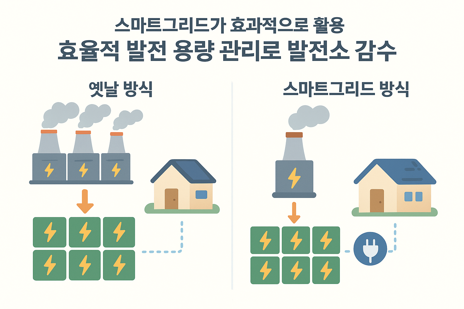👉 그래서 “발전소 감수”란, 스마트그리드 덕분에 전기를 더 똑똑하게 쓰고 관리해서 발전소를 적게 지어도 되는 것을 의미해요.