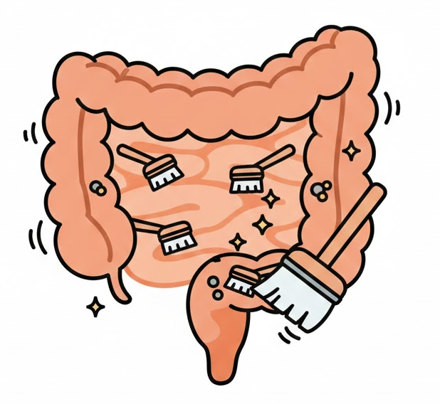 - 식후 12시간 이상 (본격적인 휴식 및 정화): 이때부터 '연동운동(MMC, Migrating Motor Complex)'이라는 강한 청소 작업이 시작됩니다. 소화되고 남은 찌꺼기와 세균을 밀어내어 장내 환경을 깨끗하게 만듭니다.