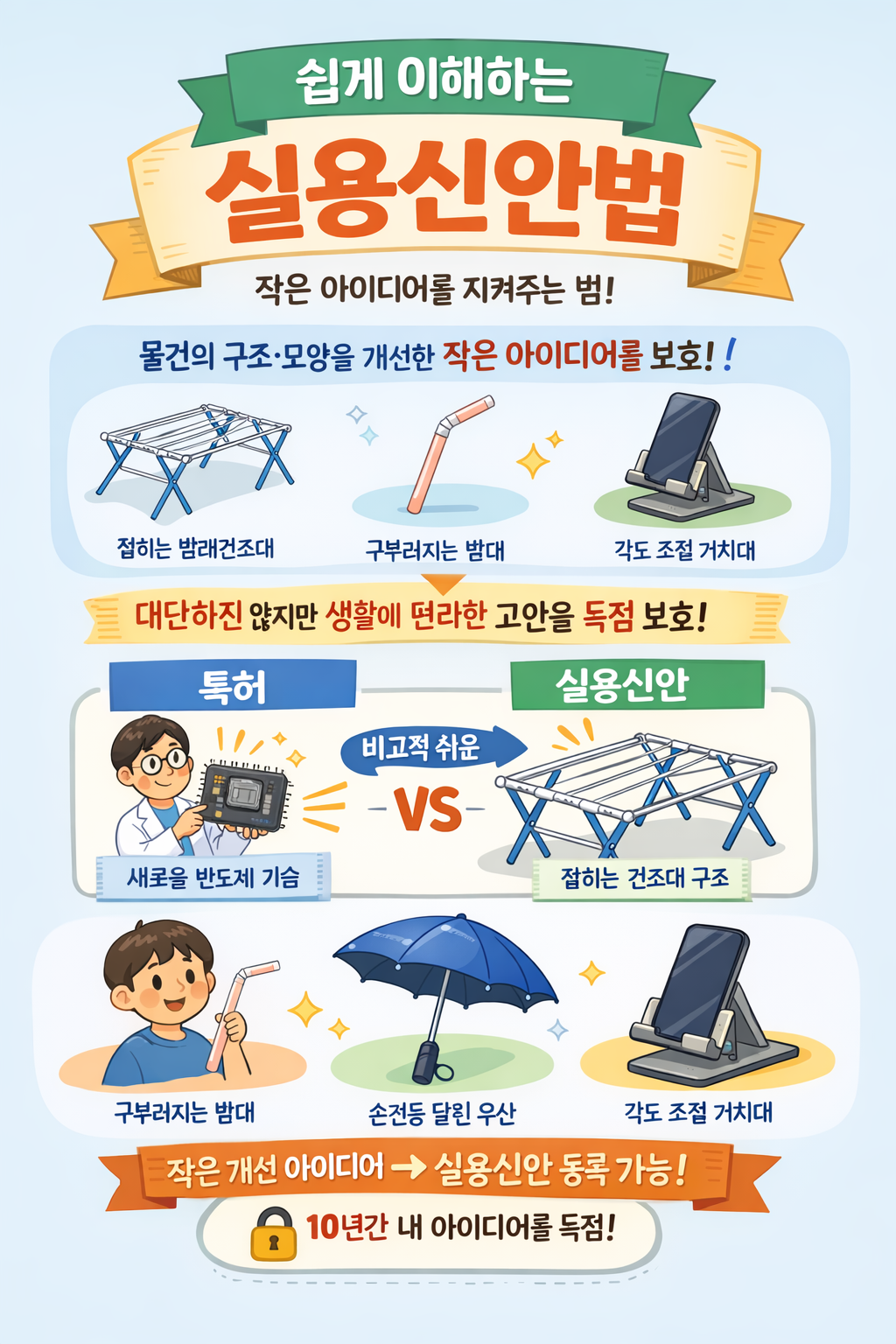 💡 실용신안법은 생활 속 작은 기술 개선을 보호하는 법이다.