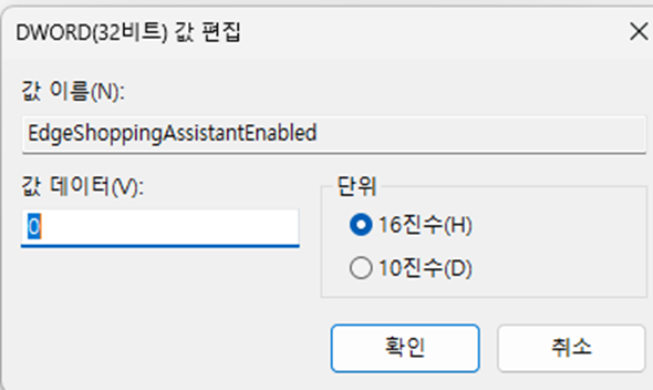 - 이름: EdgeShoppingAssistantEnabled