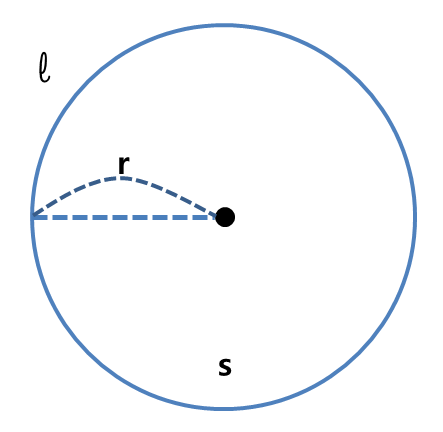 반지름의 길이를 r (Radius), 원의 둘레의 길이 l (Length), 원의 넓이를 S(Square)라고 하고,