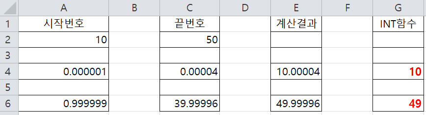 ▻ 결과는 소수점이 있는 실수로 나오며, 정수로 만들기 위해서 만든 수식을 INT() 함수의 인수로 지정해야 합니다.