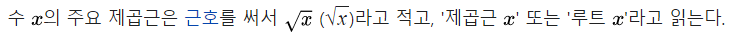 * 제곱근 : 어떤 수의 제곱에 대하여 그 어떤 수를 이르는 말