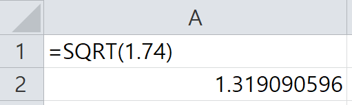 형식) SQRT(인수) : 인수의 양의 제곱근을 계산합니다.