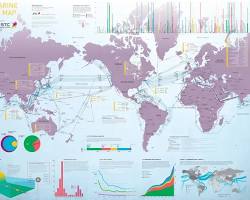 위 지도는 전 세계 해저 케이블의 대략적인 경로를 보여줍니다. 북미와 유럽 사이, 아시아와 북미 사이에 특히 많은 케이블이 집중되어 있는 것을 확인할 수 있습니다. 이는 해당 지역 간의 인터넷 트래픽이 매우 활발하다는 것을 의미합니다.