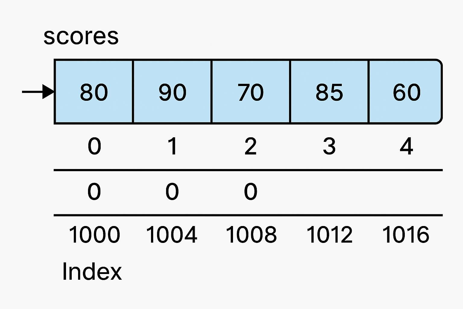 → scores[2] = 주소 1008 = 70