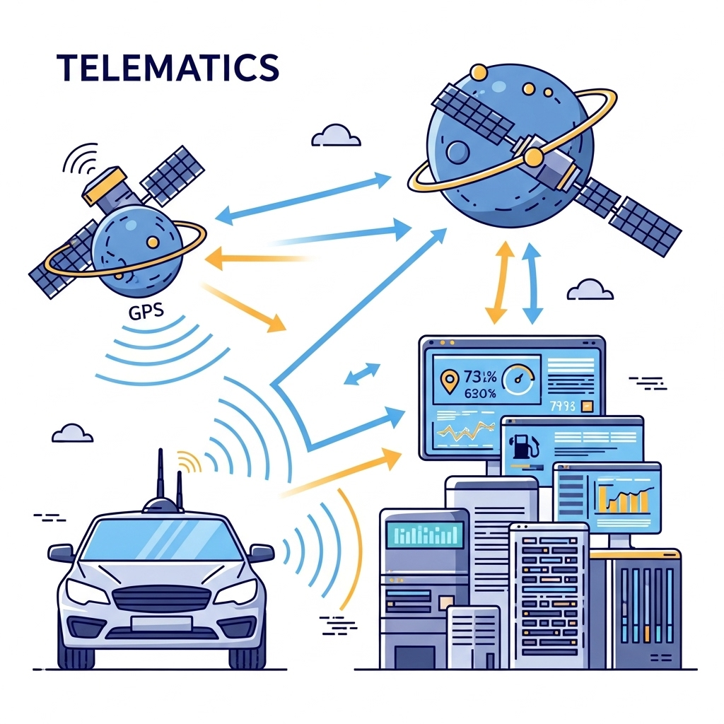 - 데이터 수집: 차량에 장착된 텔레매틱스 장치(블랙박스라고도 불림)는 GPS 수신기, 다양한 센서, 차량 진단 시스템(OBD-II, CAN-BUS 포트 등)을 통해 차량의 위치, 속도, 주행 기록, 엔진 상태, 연료 소비량, 운전 습관(급가속, 급제동 등)과 같은 데이터를 실시간으로 수집합니다.
