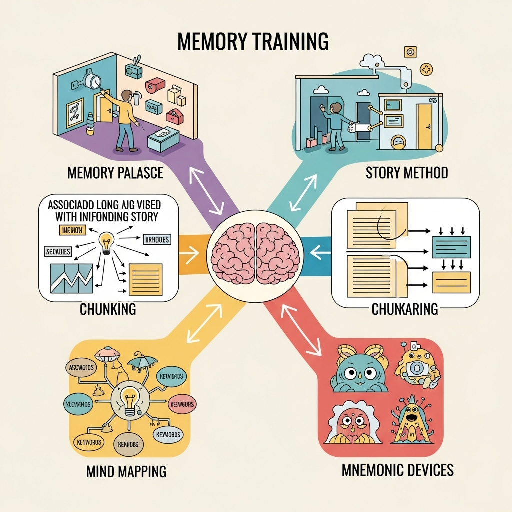 | 3주차 | 기억술 훈련 | - 연상법, 장소법, 스토리텔링 병행 - 자주 가는 길에 내용 배치 - 모든 내용을 하나의 이야기로 만들기 |