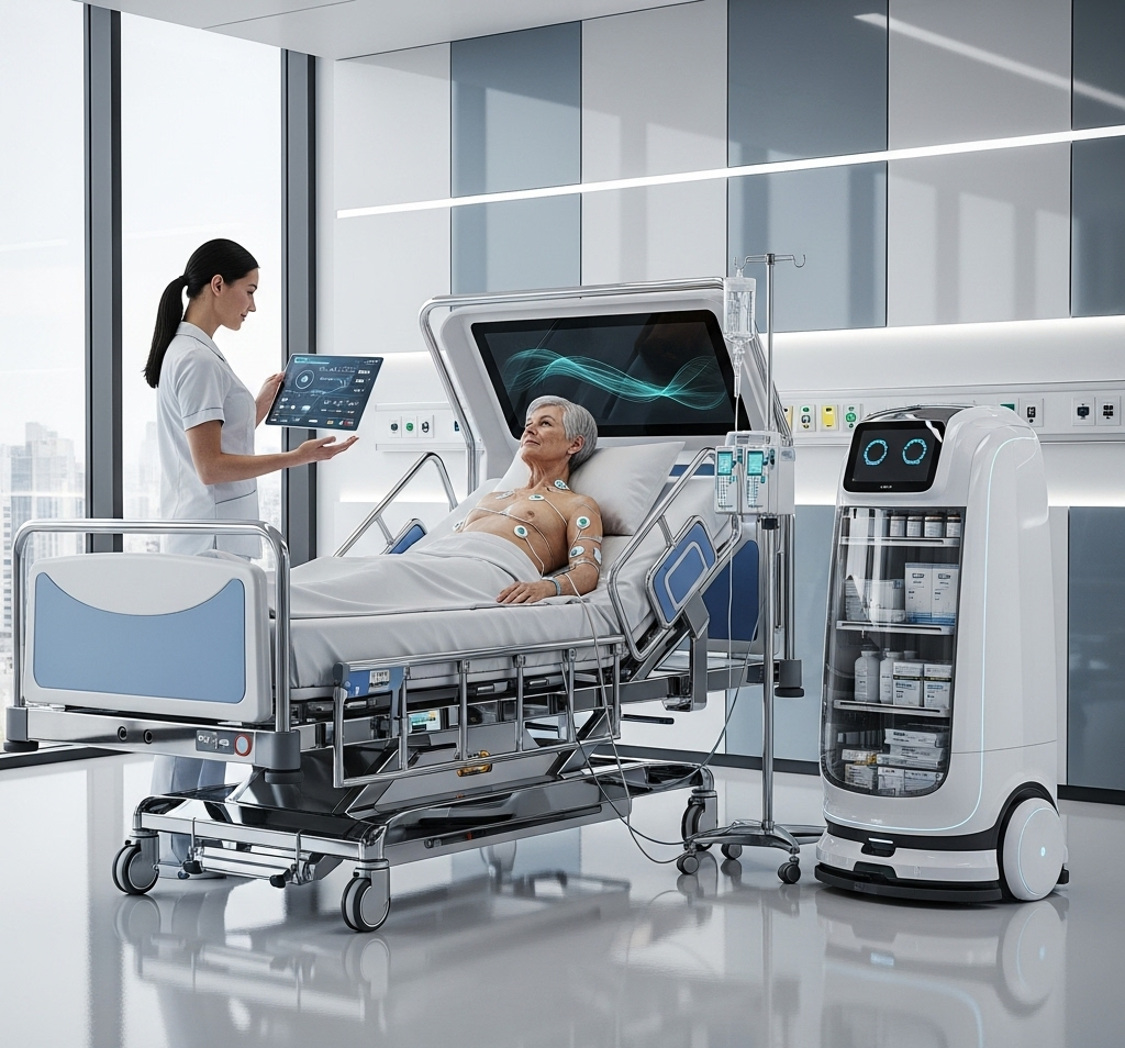 - 스마트 침대 시스템: 환자의 체위 변화를 감지하여 욕창 예방을 위한 자동 조절 기능을 제공합니다.