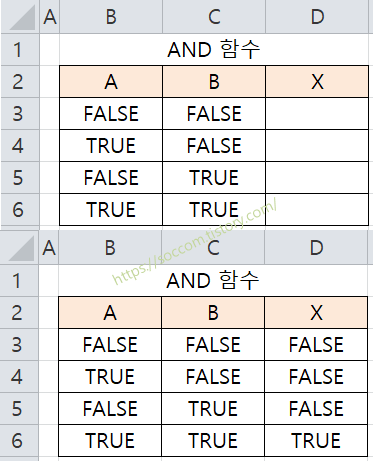 AND 함수는 여러 개의 논리식 결과가 모두 참(TRUE)일 때만 참(TRUE)을 반환하는 함수입니다.
