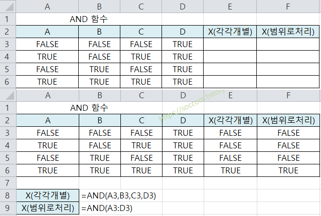 이방식이 엑셀 AND함수와 같은 동작으로 이루어진다.