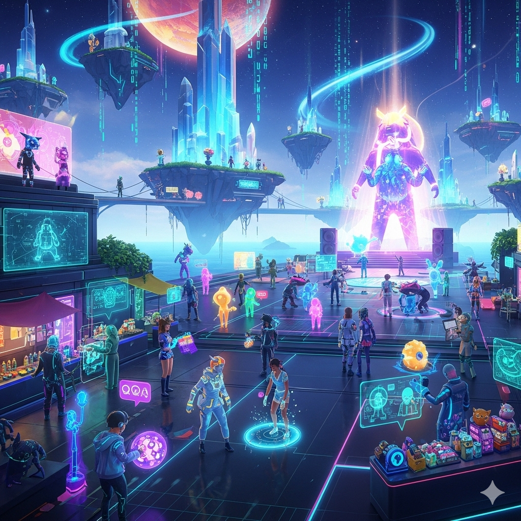 - 경제 활동: 가상 세계 내에서 디지털 화폐나 아이템을 거래하고, 콘텐츠를 만들어 수익을 창출하는 등 현실의 경제 시스템이 확장된 형태로 존재합니다.