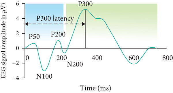 - 정의: ERP(사건관련전위) 중 하나로, 특정 자극이 나왔을 때 300ms(0.3초) 정도 뒤에 뇌에서 나타나는 전기적 반응.