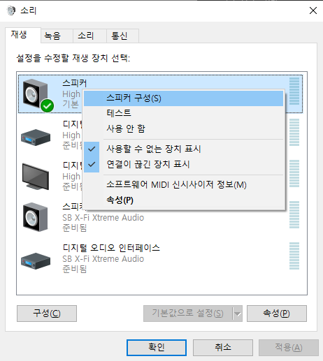 1. 윈도우 시계 옆에 스피커 아이콘 마오 클릭