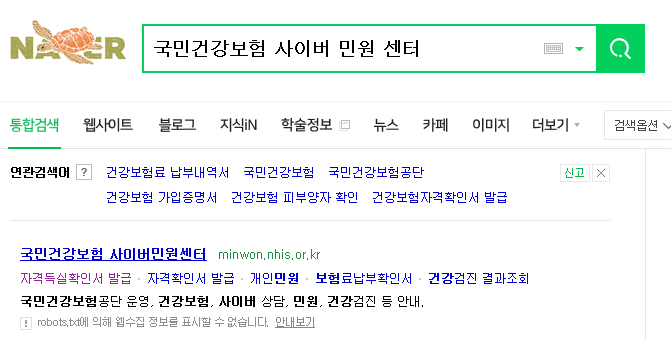1. 네이버 : 국민건강보험 사이버민원센터 // 검색한다.
