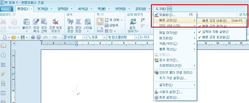 설명은 한글 2010버젼을 기준으로 설명한다.
