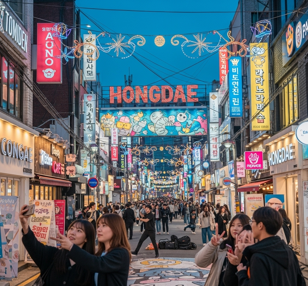Let's take a trip to Hongdae, a neighborhood full of vibrant energy!
