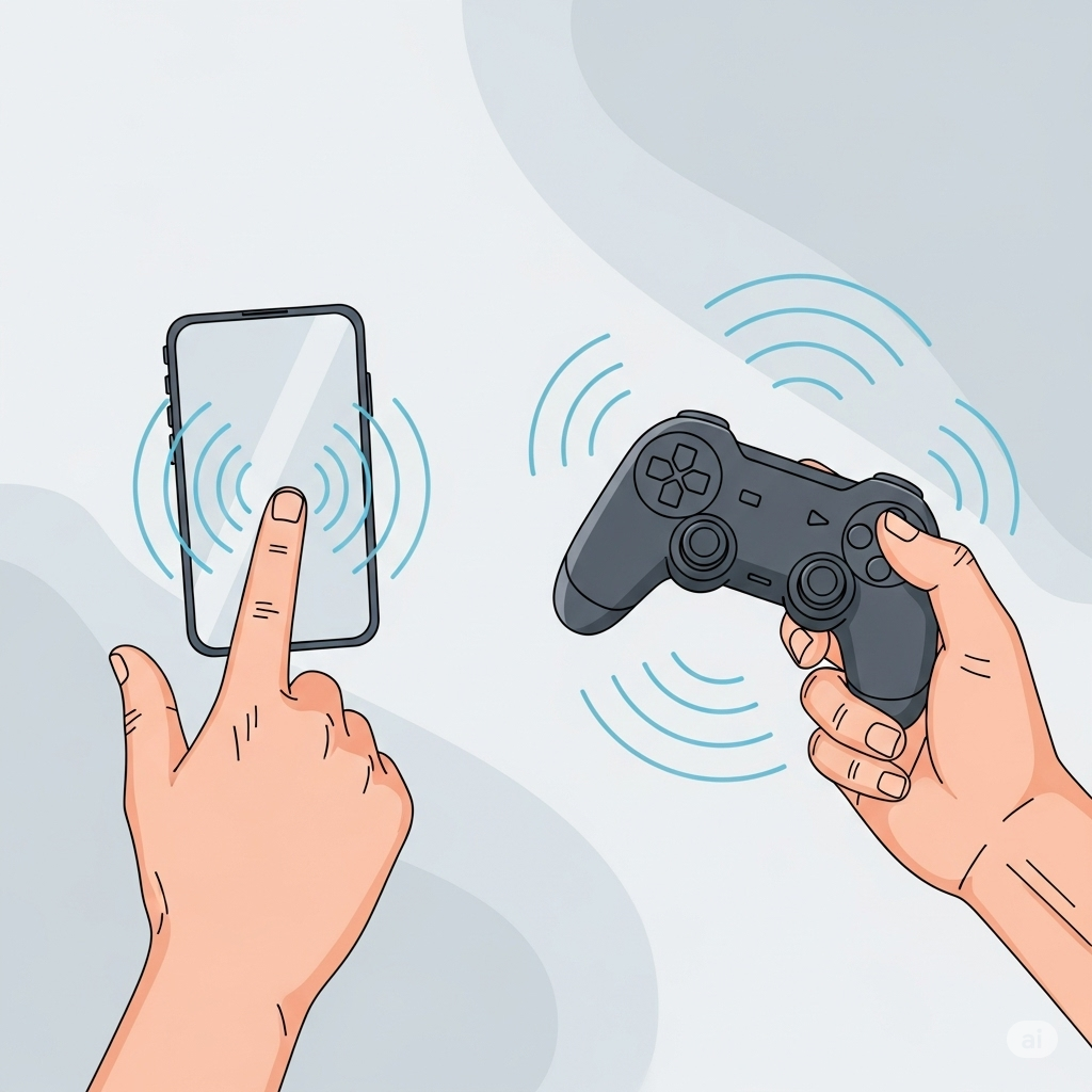 햅틱 통신은 '촉각'을 이용해 정보를 전달하는 기술을 말합니다. 우리가 일반적으로 사용하는 스마트폰의 진동이나 게임 컨트롤러의 떨림이 바로 가장 흔한 햅틱 통신의 예시입니다.