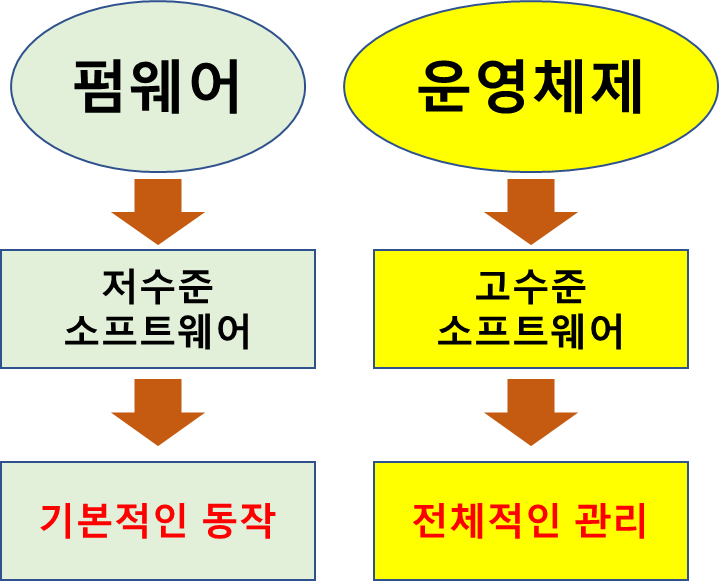 * 펌웨어 : 장치의 기본적인 동작(초기화, 부팅, 하드웨어 인식, 설정/보안 관리 등)을 제어하고 관리하는 저수준 소프트웨어이다.